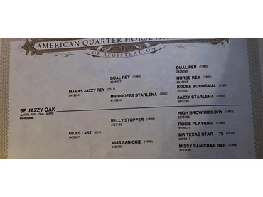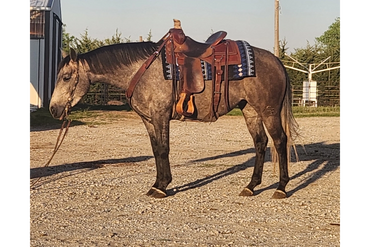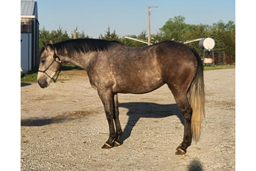 Jazzy is sired by Mama Jazzy Rey - son of Dual Rey, is a money earner in NRCHA, AQHA roping and World Show qualifier in heading and heeling. Out of a daughter of Belly Stopper. Very good minded, spent time in Kansas being day worked off of. Hauled to roping clinic and done well. Beautiful mover, sound and no bad habits. Jazzy has a nice start and would excel in Ranch Versatility .